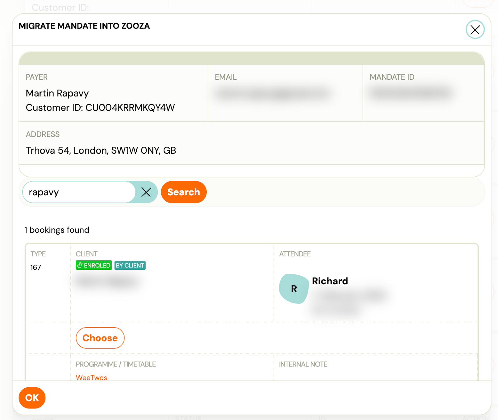 A list of all Direct Debit mandates not yet linked in Zooza will be displayed
