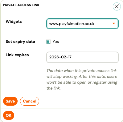 Result: the parent can register the child into that specific individual plan via the link, while the class remains private.