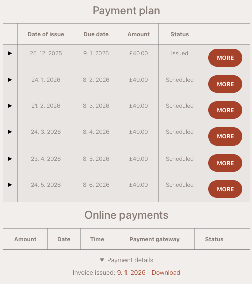 In the payments section, you can: