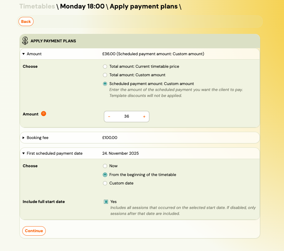 This will open the settings for creating a payment plan. Select the
