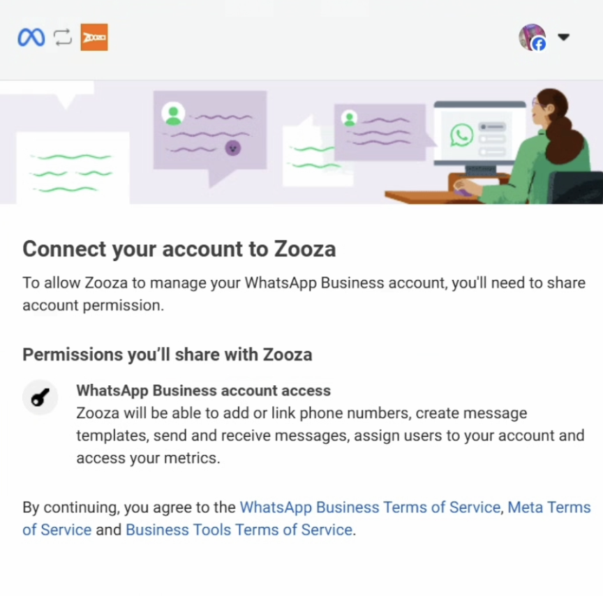 Dostupnosť: Ak v Zooza nevidíte možnosť Connect to WhatsApp, buď (a) váš balík nezahŕňa integráciu, alebo (b) WhatsApp Business Platform nie je pre váš účet povolená. V oboch prípadoch nás kontaktujte a pomôžeme vám.