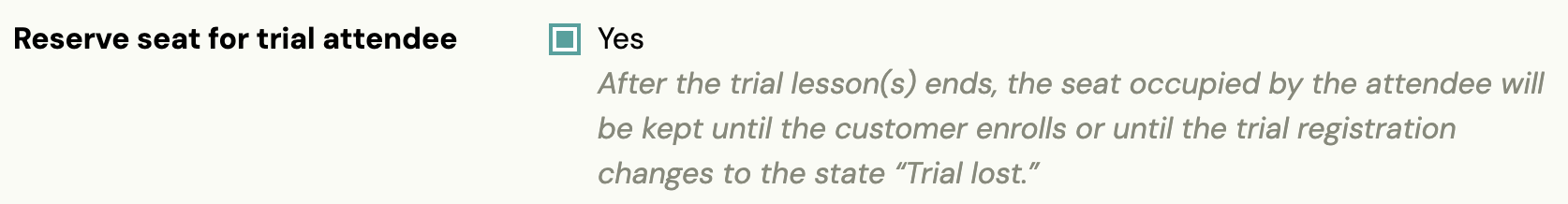 Ak chcete, aby mal účastník skúšobnej hodiny svoje miesto v skupine rezervované, kým sa nezapíše alebo nebude označený ako stratený, prejdite na: