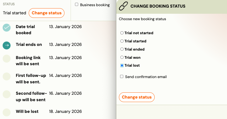 Ak s týmto klientom už nechcete ďalej pracovať, odporúčaný postup je zmeniť stav registrácie na Trial Lost.