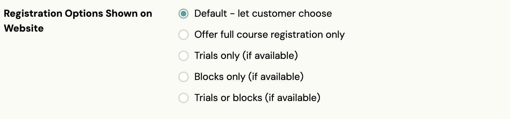 Ak chcete, aby sa klienti mohli registrovať iba na skúšobné hodiny (a nie priamo do plného kurzu), otvorte: