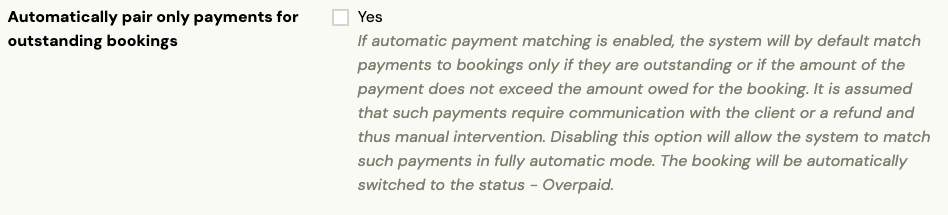 Pri tomto nastavení systém automaticky páruje platby iba vtedy,