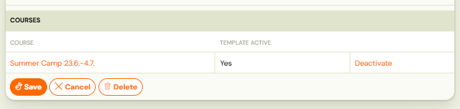 Nižšie v časti kurzy máte zoznam Vašich kurzov a pri každom možnosť šablónu aktivovať alebo deaktivovať.